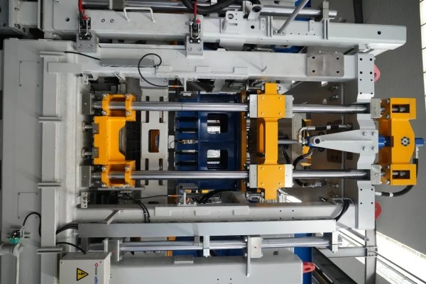 3Систем за автоматско брзо менување мувла Системот за автоматско брзо менување на мувлата на Zenith се заснова на координирана работа на повеќе уреди, овозможувајќи интелигентна, брза и прецизна замена на мувла. Откако калапот се транспортира до главната машина, се поставува на единицата за менување калапи со систем за подигнување. Системот автоматски го завршува процесот на промена на калапот без рачно ракување, позиционирање или заклучување.