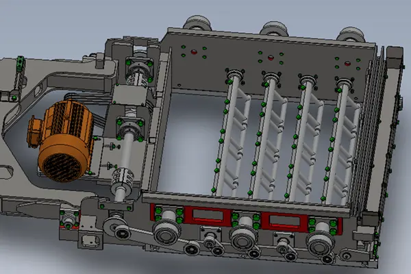 4Суспендиран систем за хранење Суспендираниот систем за напојување усвојува модуларен дизајн кој ги интегрира кутијата за напојување, стругалката, четката за прекршување и единицата за кршење на лакот. И кутиите за хранење со мешавини за лице и базни мешавини се поставени на рамката за хранење, што овозможува брза замена и оптимални перформанси за хранење.