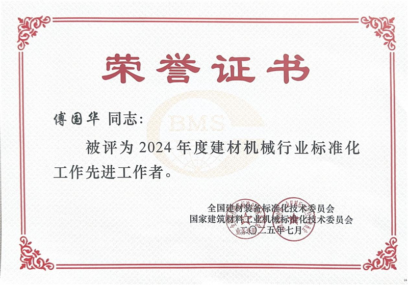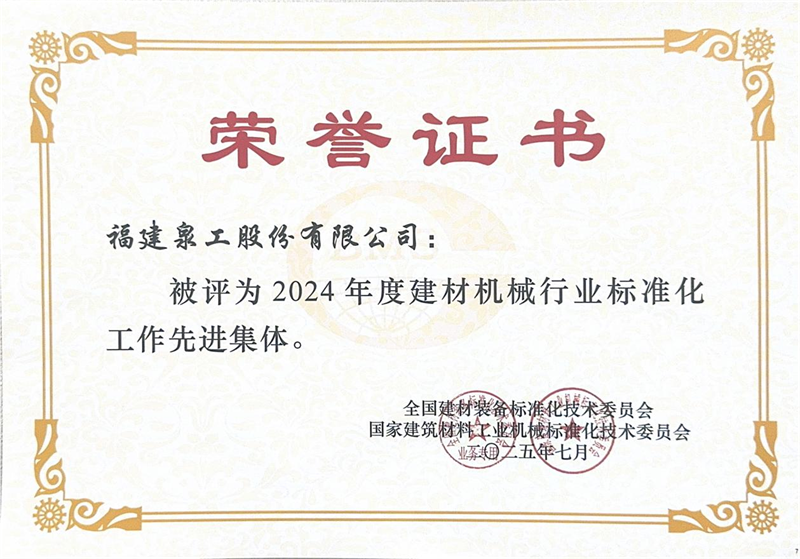 На сесијата за пофалби одржана во исто време, Quangong Machinery Co., Ltd ја доби титулата „Напреден колектив во стандардизација работа во индустријата за машини за градежни материјали во 2024 година“, а на заменикот генерален директор на компанијата Фу Гуохуа му беше доделена титулата „Напреден работник во стандардизациска работа во машински градежни материјали20dust4“.