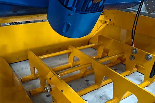 На секој агол од масата за вибрации се поставени 4 воздушни перничиња за да се намали амплитудата на вибрациите за време на вибрациите за да се намали механичкото влијание на масата за вибрации врз палетите, намалувајќи го оштетувањето на палетите за време на производството за да се подобри работниот век на палетите.